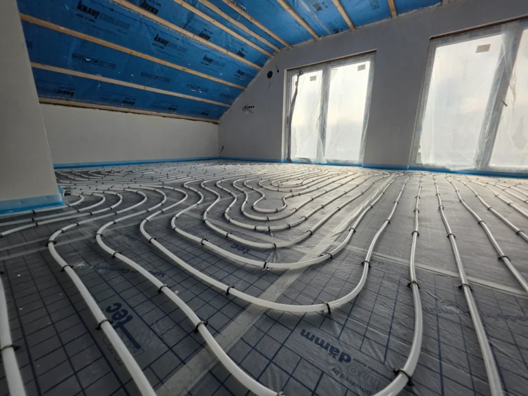Ob Neubau oder Sanierung: Wir bieten Ihnen fachgerechte Leistungen rund um die Fußbodenheizung – von der Vorbereitung des Untergrunds über die Rohrverlegung bis zum sauberen Abschluss.
